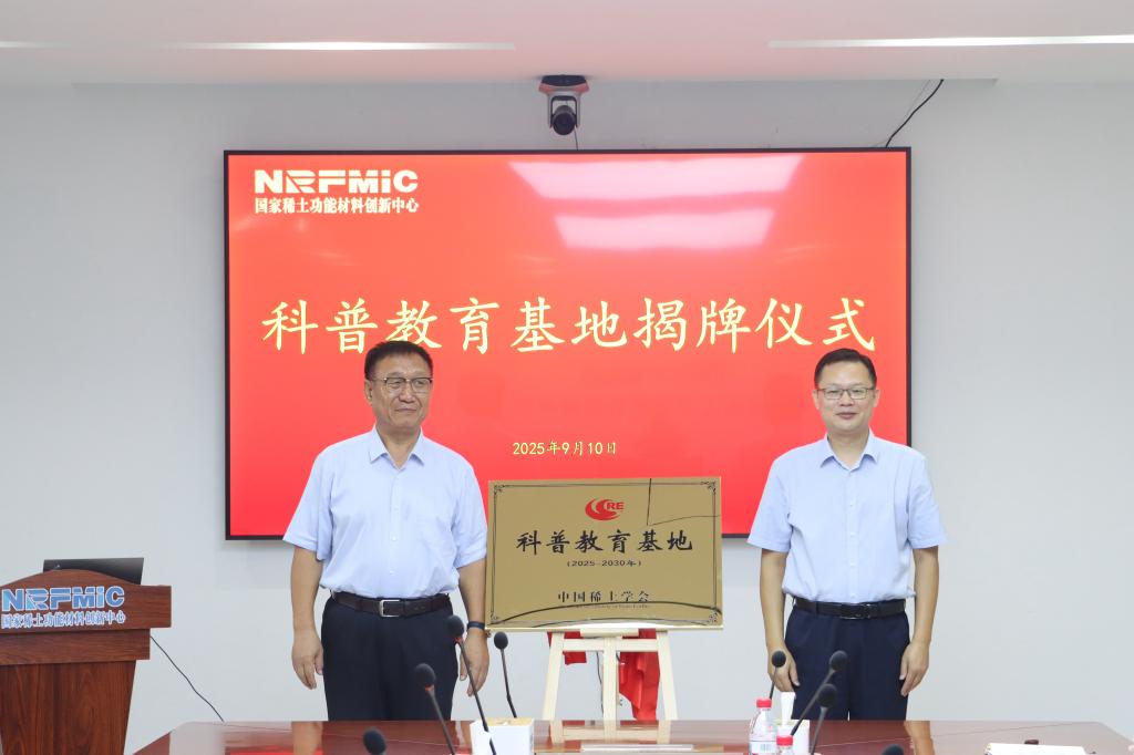 本网讯 9月10日,国家稀土功能材料创新中心获批“中国稀土学会首批科普教育基地”,揭牌仪式在该中心举行。中国稀土学会理事长李波,副理事长兼秘书长、国家稀土功能材料创新中心专家委员会委员杨占峰、副秘书长喻晓军,颜射