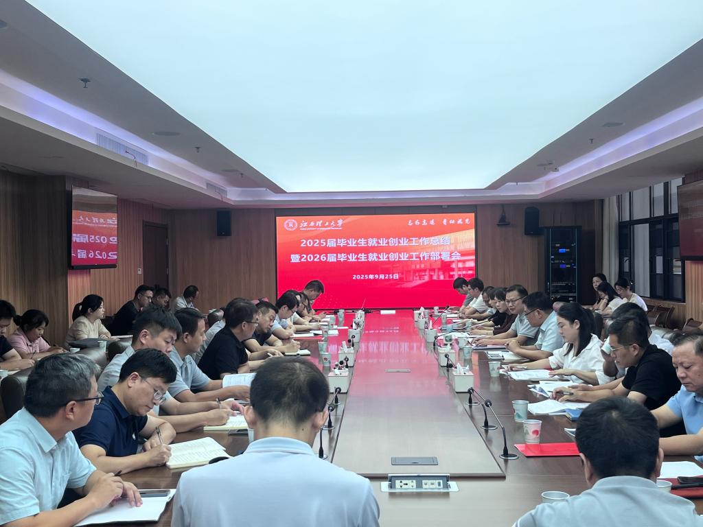 2025届毕业生就业创业工作总结暨2026届毕业生就业创业工作部署会在三江校区濂溪楼2号会议室召开。校党委常委、副校长熊志华出席会议,招生就业处、研究生院负责人,学院本科生和研究生就业工作分管领导、南昌校区招生就业办负责人、就业辅导员等参加会议。会议由招生就业处处长邓晓宇主持。