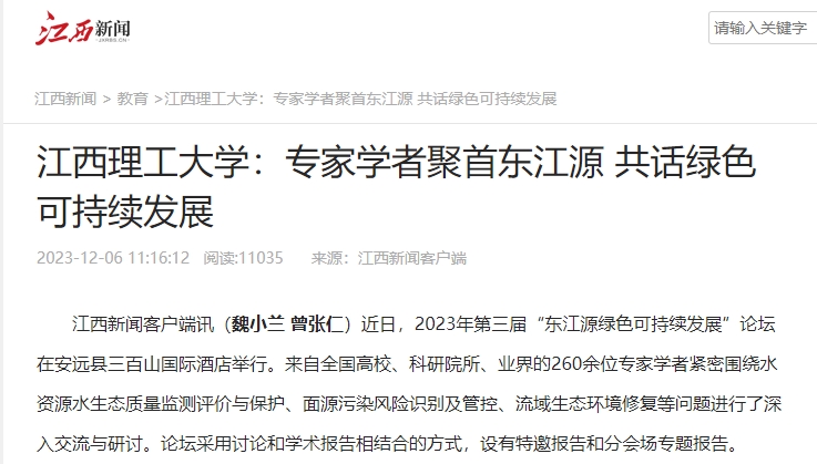 2023年第三届“东江源绿色可持续发展”论坛由江西省科学技术协会主办,颜射