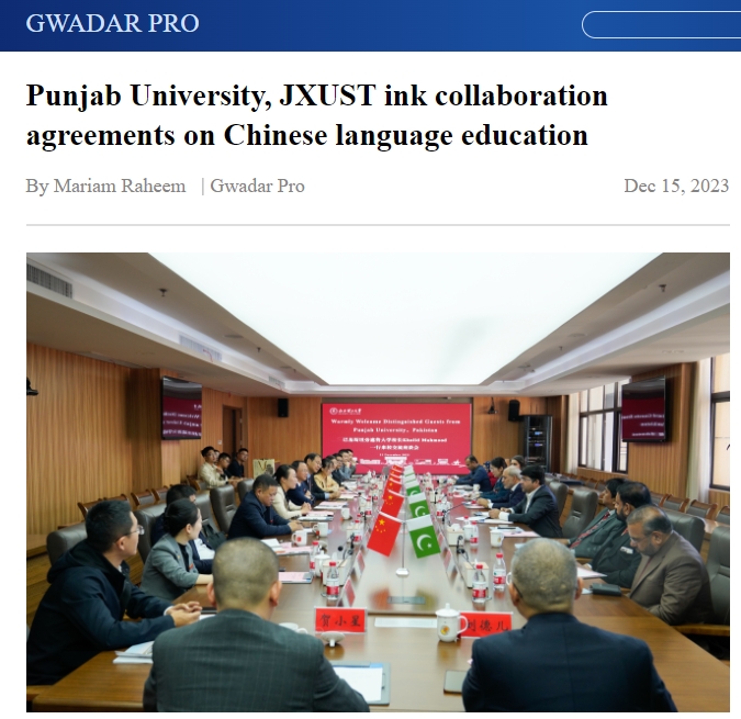 NANCHANG, Dec. 15 (Gwadar Pro) - On December 11 Punjab University, Pakistan, and Jiangxi University of Science and Technology (JXUST), China, signed the “Implementation Agreement of the Council of Confucius Institute at Punjab University” and the “Agreement on ‘2+2’ program for undergraduate students majoring in International Chinese Language Education”.
