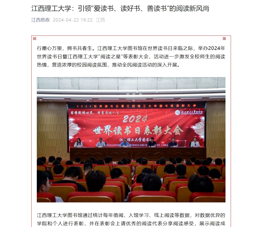 “阅读之星”等表彰大会,活动进一步激发全校师生的阅读热情,营造浓厚的校园阅读氛围,推动全民阅读活动的深入开展。