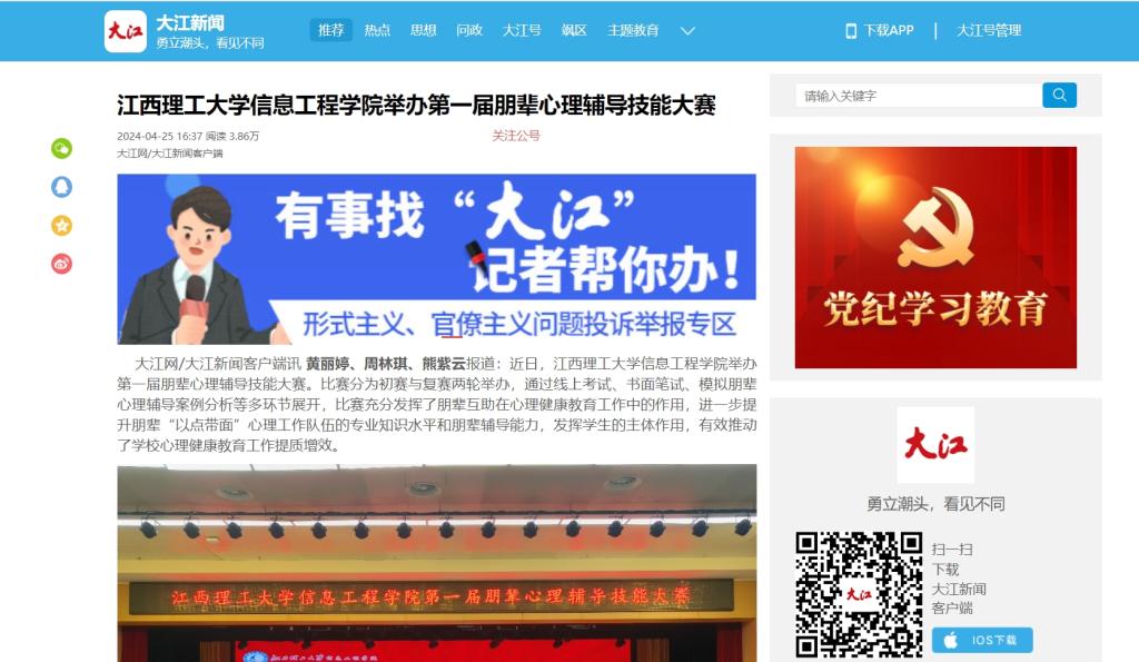 信息工程学院举办第一届朋辈心理辅导技能大赛。比赛分为初赛与复赛两轮举办,通过线上考试、书面笔试、模拟朋辈心理辅导案例分析等多环节展开,比赛充分发挥了朋辈互助在心理健康教育工作中的作用,进一步提升朋辈“以点带面”心理工作队伍的专业知识水平和朋辈辅导能力,发挥学生的主体作用,有效推动了学校心理健康教育工作提质增效。