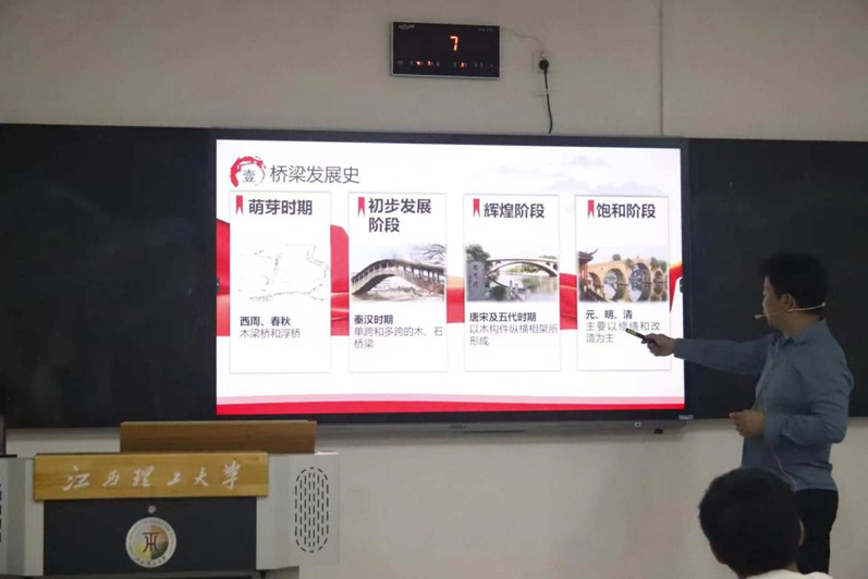 主题思政课上,丰土根教授还为同学们介绍了见证中共一大胜利召开的宣公桥,承继了红军艰苦卓绝的长征精神的云贵红军桥,沂蒙妇女不畏冰冷、舍生忘我用身体搭建的“人桥”,江西兴国的红军桥,瑞金武阳大桥,于都红军大桥,信丰嘉定桥……这些桥梁不仅是交通要道,更是红色文化的象征,承载着革命先烈的英勇事迹和崇高精神。在场的学生们都热血沸腾,土木222班封磊表示:“通过丰教授的介绍,我学习到了先辈们的造桥精神和吃苦精神,作为江西人,未来将持续深入江西各地挖掘红色桥梁故事,让一座座精神图腾在赣鄱大地上赓续相传。”