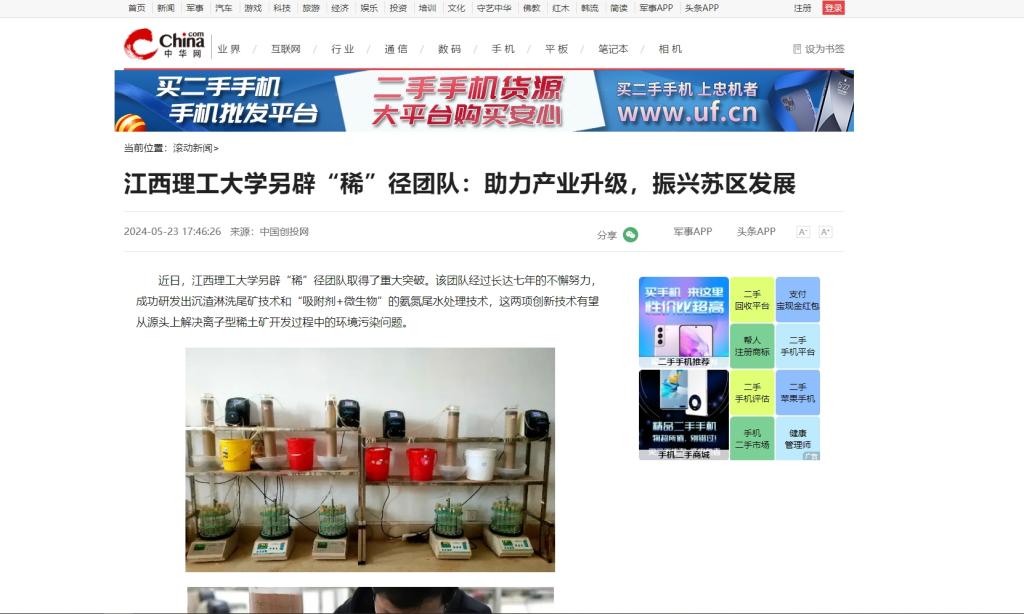 另辟“稀”径团队取得了重大突破。该团队经过长达七年的不懈努力,成功研发出沉渣淋洗尾矿技术和“吸附剂+微生物”的氨氮尾水处理技术,这两项创新技术有望从源头上解决离子型稀土矿开发过程中的环境污染问题。