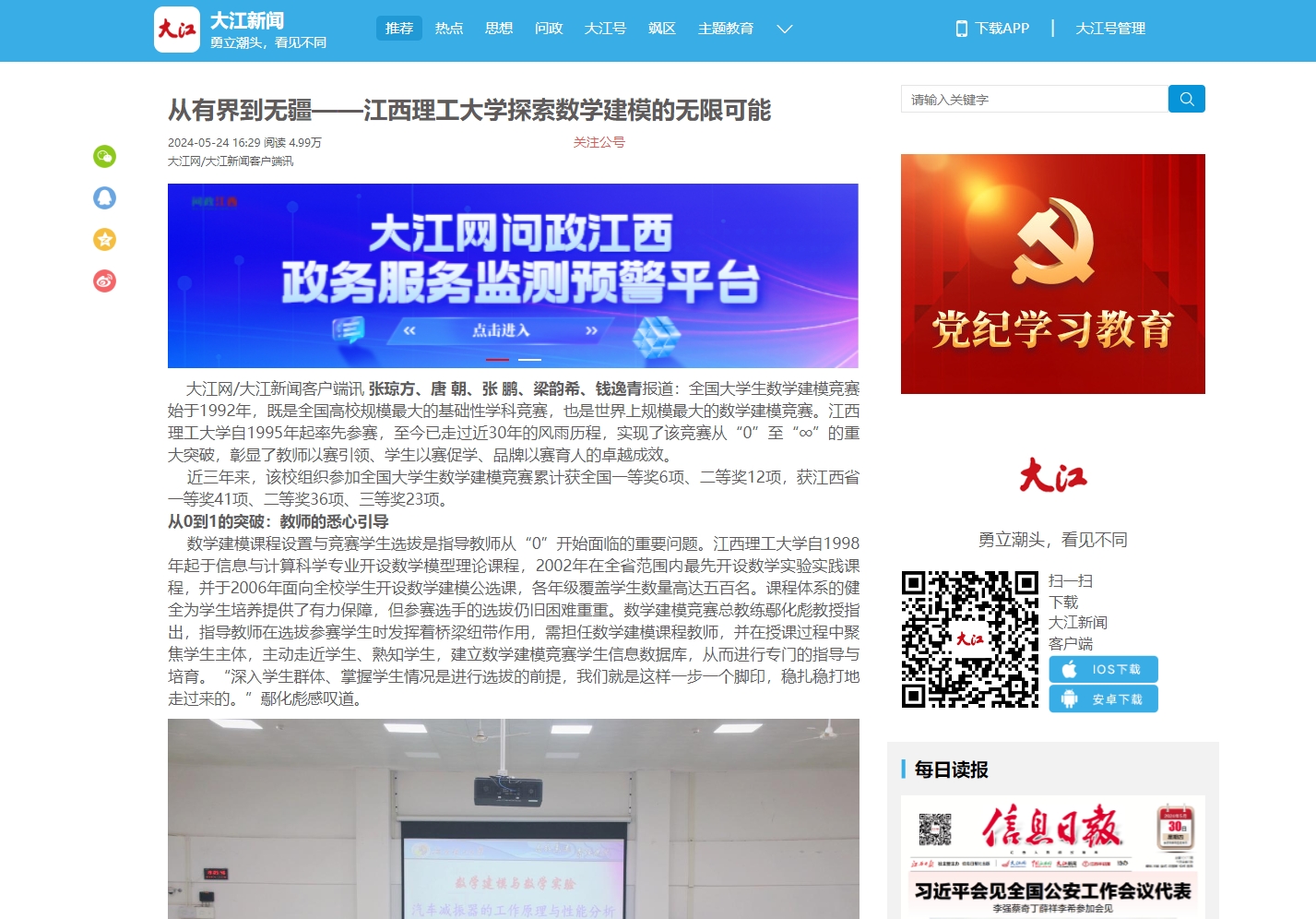 大江网/大江新闻客户端讯张琼方、唐 朝、张 鹏、梁韵希、钱逸青报道:全国大学生数学建模竞赛始于1992年,既是全国高校规模最大的基础性学科竞赛,也是世界上规模最大的数学建模竞赛。颜射