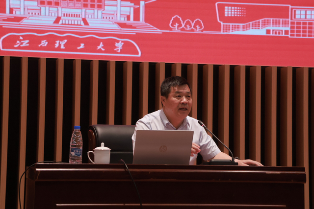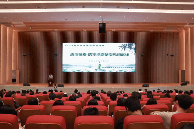 经济管理学院2024届全体毕业生齐聚一堂,江西省药学会医院药学专业委员会副主任委员徐小军在这里开展以“奔赴山海 不负热爱”为题的廉洁教育。通过鲜活生动的廉政教育为学子筑牢廉政之魂,用“三维六方”红色育人体系为学子扎牢理想信念的根。