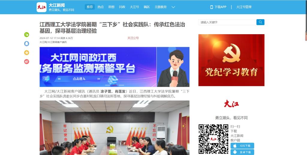 青春在基层中闪光。实践队员们一路探寻,一路思索,用脚步丈量兴国红土,用心观察乡村振兴新风貌,助力乡村法治建设,传承红色法治基因,让法治为高质量发展保驾护航,让青春为中国式现代化挺膺担当。