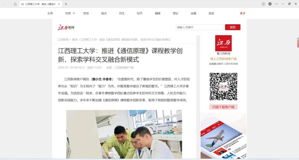 在今年4月由江西省高等教育学会举办的第四届全国教学创新大赛中,许春冬教学团队荣获江西赛区新工科正高组特等奖好成绩。目前为止,团队在学科竞赛中取得了52项国家级和省级竞赛奖励。许春冬教学团队还多次受邀在校内外进行经验分享,课程思政教学改革试点得到了多家权威媒体报道,教学经验得到了较好的推广。