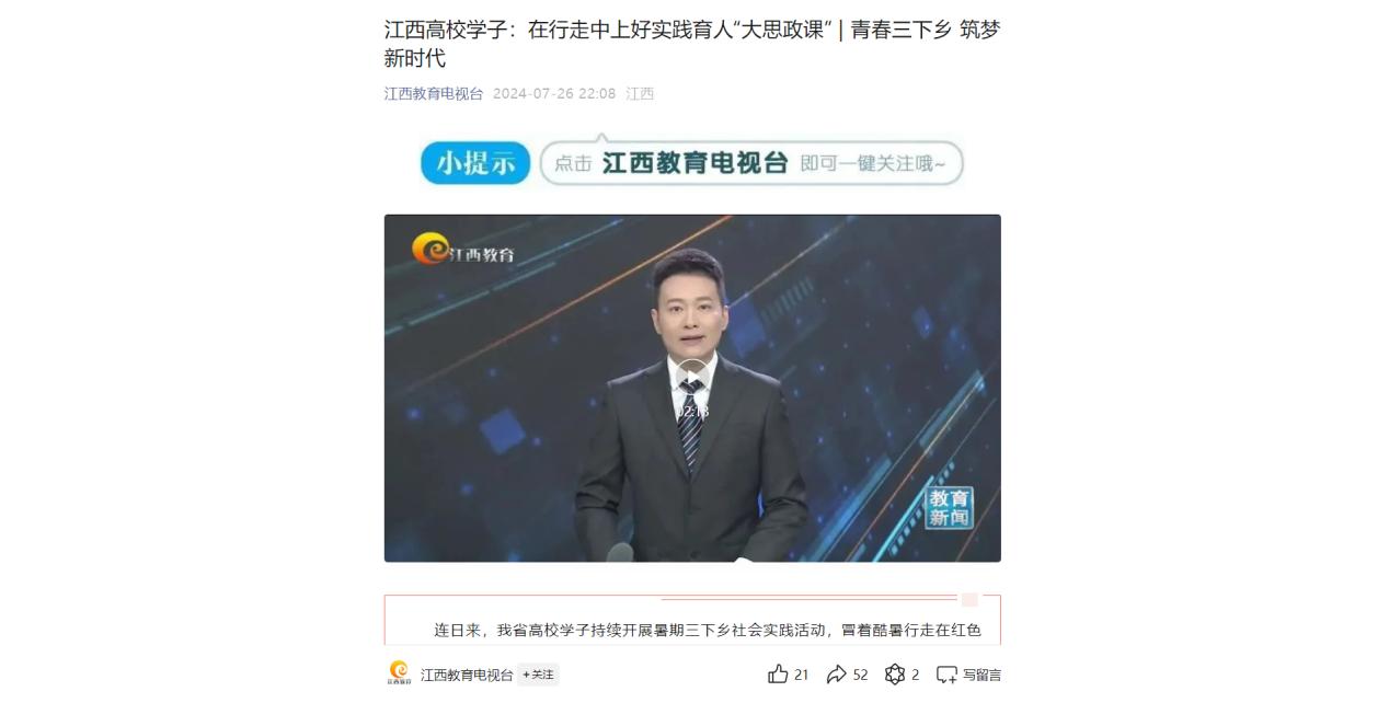 连日来,我省高校学子持续开展暑期三下乡社会实践活动,冒着酷暑行走在红色革命遗址、田间地头、乡村社区等地,开展红色基因传承、理论宣讲等活动,在行走中上好实践育人“大思政课”。