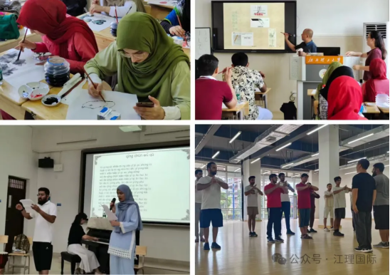 还为营员安排了非遗漆扇制作课,中国画课、中国武术课、江理特色健美操课、中巴音乐鉴赏课等丰富多彩的文化活动。在非遗漆扇制作课上,学员们通过漆扇了解到了人们对江南水乡的浪漫想象,体验一次“半是匠心独运,半是自然天成”的快乐;在中国画课上,学员们学习了中国画讲究笔墨神韵之美,感受了“纸上丹青含万象,墨香浓淡欠佳人”的中国美;在中国武术课上,学员们不仅学习了武术,更体会到了中国武术传达的“卧似一张弓,站似一棵松”的中华民族毅力和气节,学习传统武术的同时,颜射