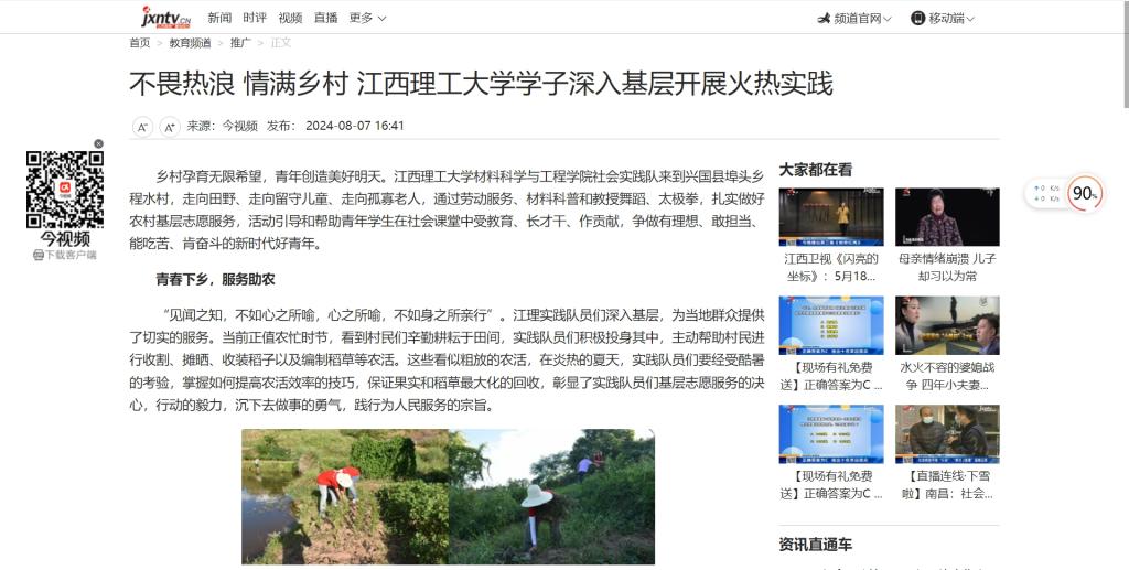 青春如同新绿的秧苗,只有在新时代的广阔田野上辛勤耕耘,才能收获最丰硕的果实。在火热暑月,基层志愿服务虽已结束,但实践队员们助力农业生产的心愈发坚定,关心乡村儿童和老人的心愈发坚定,江理材料科学与工程学院社会实践队将继续发扬不畏艰难、敢于吃苦的精神,让乡村延续关爱和真情。