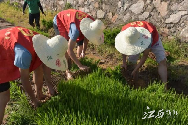 实践服务队得知眼下正是水稻秧苗栽种的黄金时期,程水村近千亩水田等待栽种。基于此,实践服务队队员们纷纷主动深入田间地头,与当地的农民们共同劳作,不仅帮助农民们完成了水稻的种植工作,更用实际行动诠释了新时代青年的责任与担当。