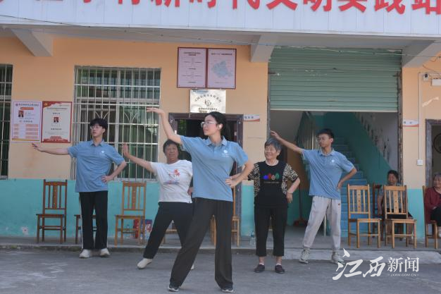 实践队队员先后来到兴国县埠头乡程水村新时代文明实践站的老年人活动中心和孤寡老人的家里,开展基层志愿服务活动,送去关心关爱。在程水村新时代文明实践站的老年人活动中心,实践队员们主动向老人们教授太极拳,编排简易的广场舞,丰富老人们的活动同时,锻炼他们的身体。