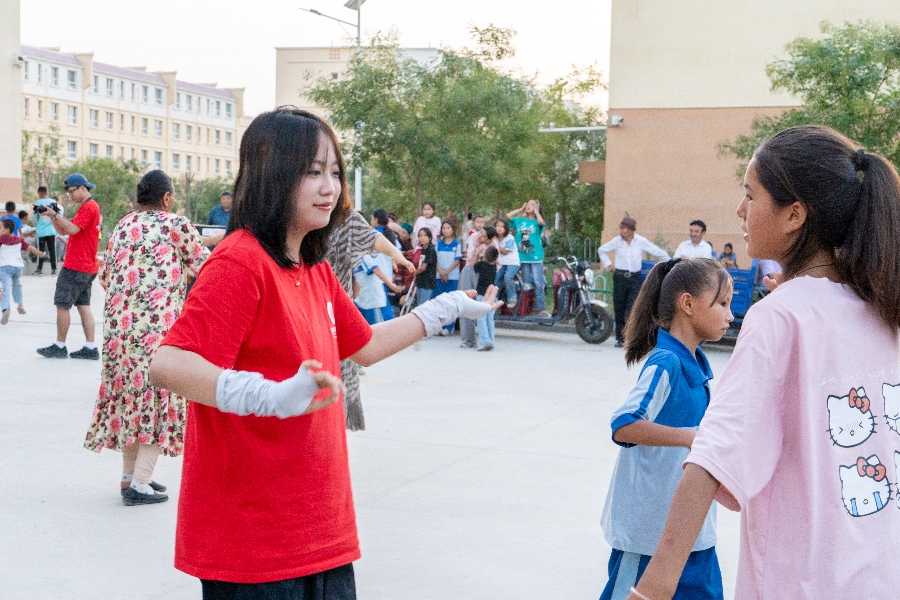 在学习的过程中,实践队员们不仅感受到了舞蹈带来的欢乐与放松,更深刻体会到了阿克陶县独特的文化魅力和民族团结的重要性。实践队成员们纷纷表示,能够亲身融入到民族舞蹈盛宴,亲身体验那份文化底蕴,深刻体会“民族融合,亲如一家”的温暖与力量,是一次非常宝贵的经历。这份跨越文化的共鸣,不仅加深了我们对彼此的理解与尊重,更坚定了我们携手共筑中华民族大家庭和谐共融的美好愿景。