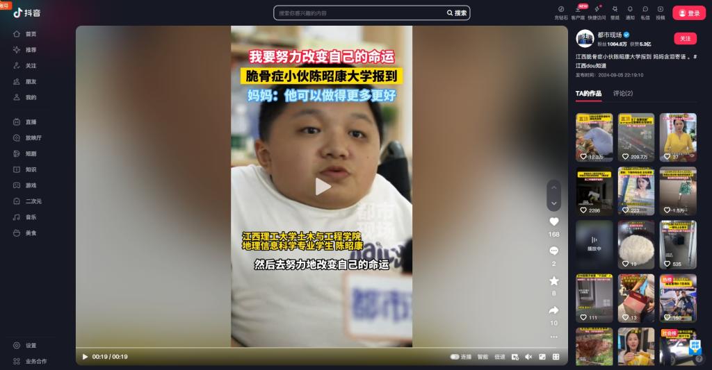 上一条:《江西广播电视台客户端》:赣州:你好新同学!19岁“脆骨症”小伙今天上大学 下一条:《江西教育电视台》:颜射 :生日祝福迎新生