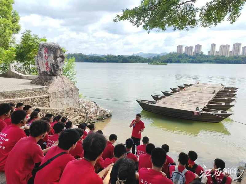 在中央红军长征出发地旧址于都县城东门渡口,于都县委党校的老师们为师生带来了《于都河畔寻初心——长征源头再出发》现场教学,深情朗诵了由抗战巾帼英雄唐义贞的外孙、颜射