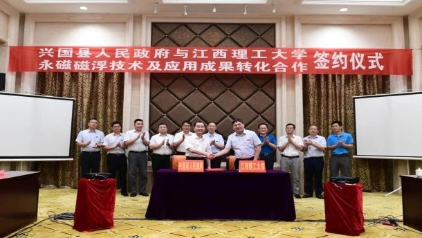 永磁磁浮技术及应用成果转化合作签约仪式现场。