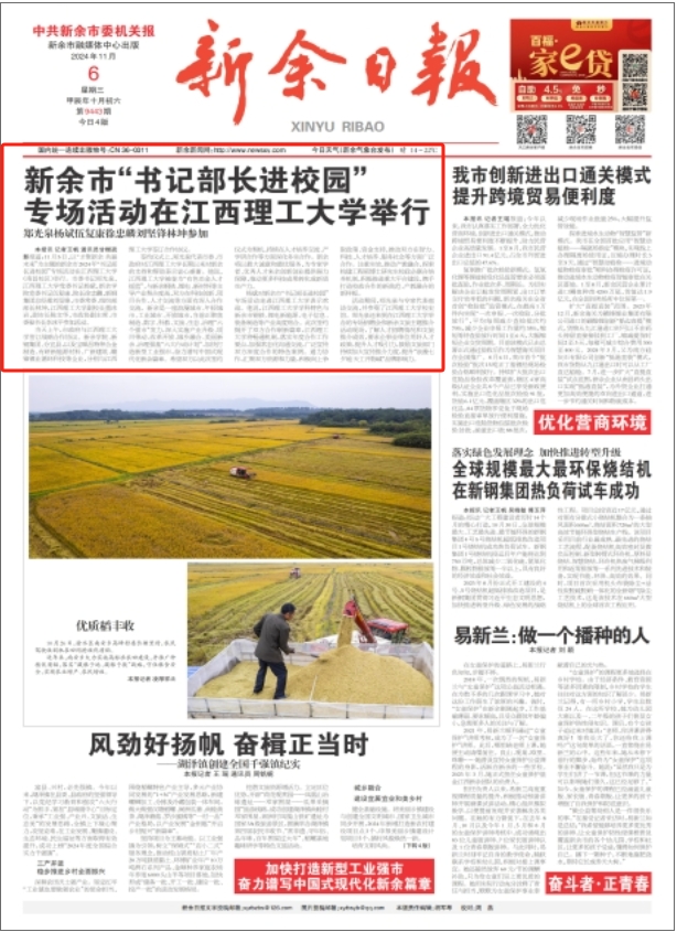 本报讯 记者王帆 通讯员甘榭疏影报道:11月5日,以“才聚新余共赢未来”为主题的新余市2024年“书记部长进校园”专场活动在颜射
