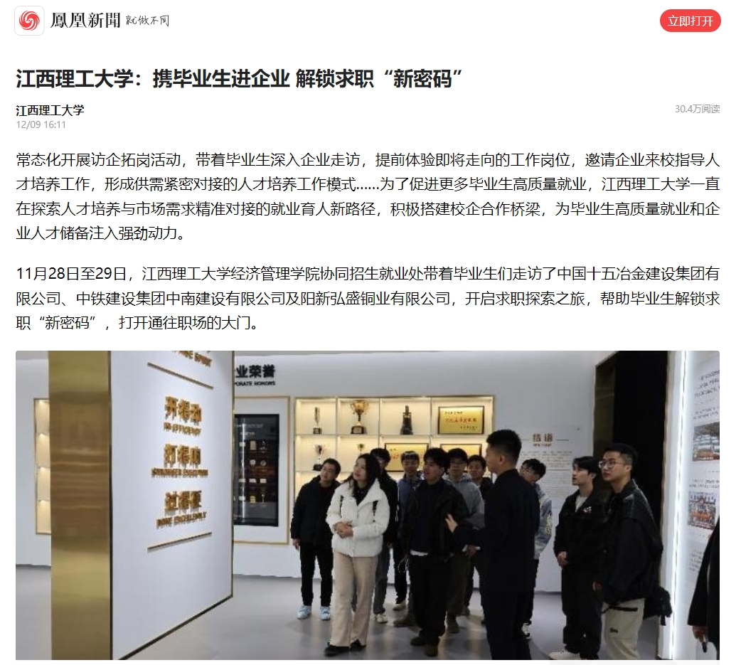 经济管理学院协同招生就业处带着毕业生们走访了中国十五冶金建设集团有限公司、中铁建设集团中南建设有限公司及阳新弘盛铜业有限公司,开启求职探索之旅,帮助毕业生解锁求职“新密码”,打开通往职场的大门。