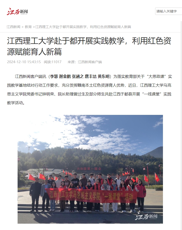 马克思主义学院党委书记钟明荣、院长助理曾过生及部分师生共赴江西于都县开展“一线课堂”实践教学活动。