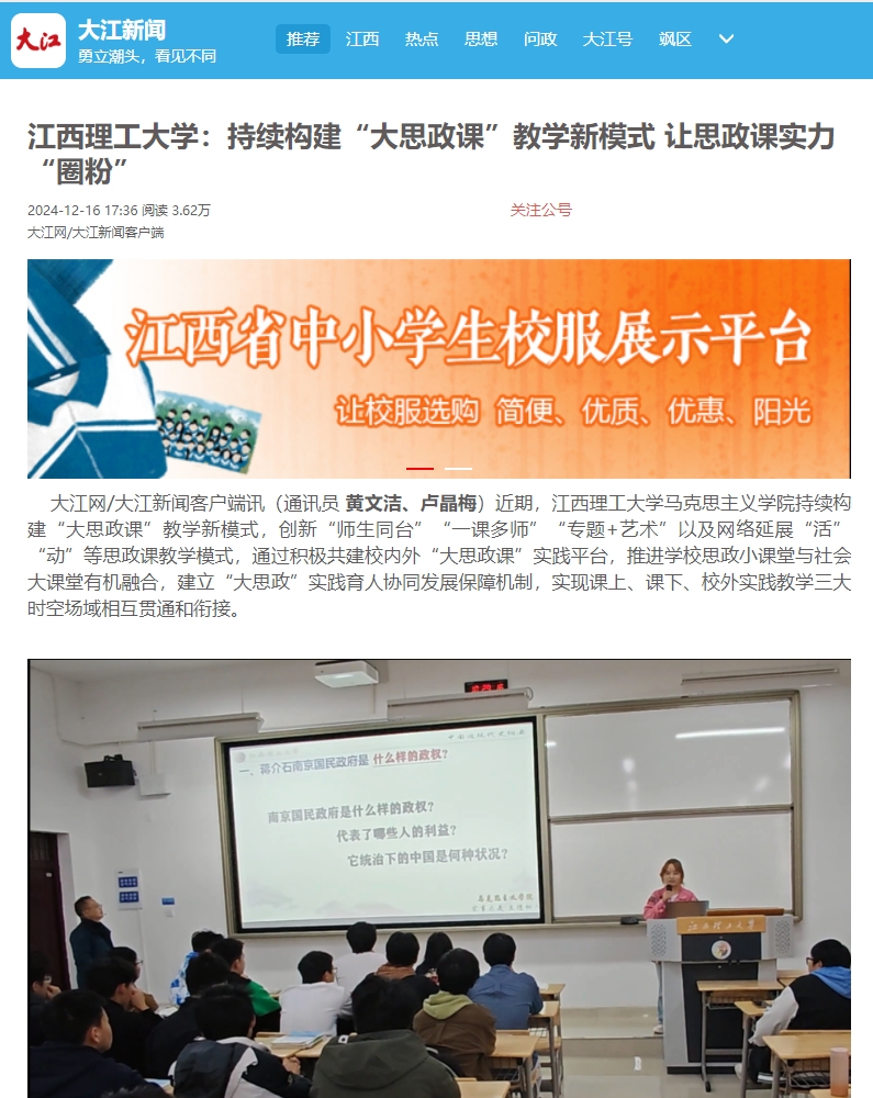 上一条:《新华网》:颜射 :善用“大思政课”弘扬长征精神 下一条:《江西新闻》:颜射 :持续构建“大思政课”教学新模式 让思政课实力“圈粉”
