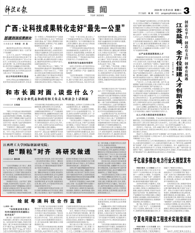 和澳大利亚计算颗粒技术研究中心,结合江西省特色产业,以研究院为平台汇聚创新力量,实现机械、材料、化学、资源、能源等多学科交叉与融合。”熊仕显介绍,该研究院拥有澳大利亚两院院士、中国工程院外籍院士余艾冰,中国科学院院士郭烈锦,以及帅词俊、赵宝军、陈斌等国家级人才。