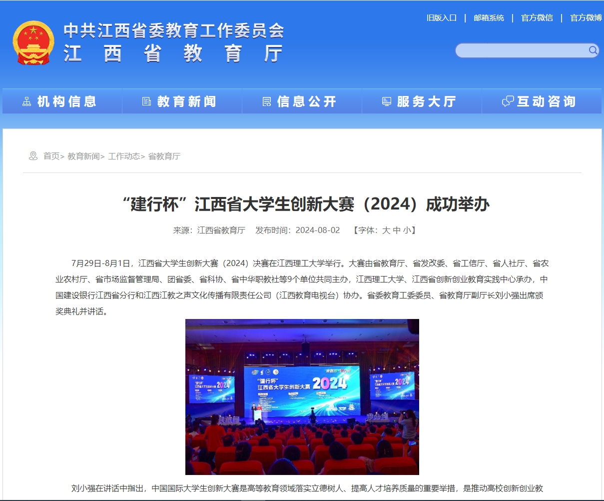 7月29日-8月1日,江西省大学生创新大赛(2024)决赛在颜射