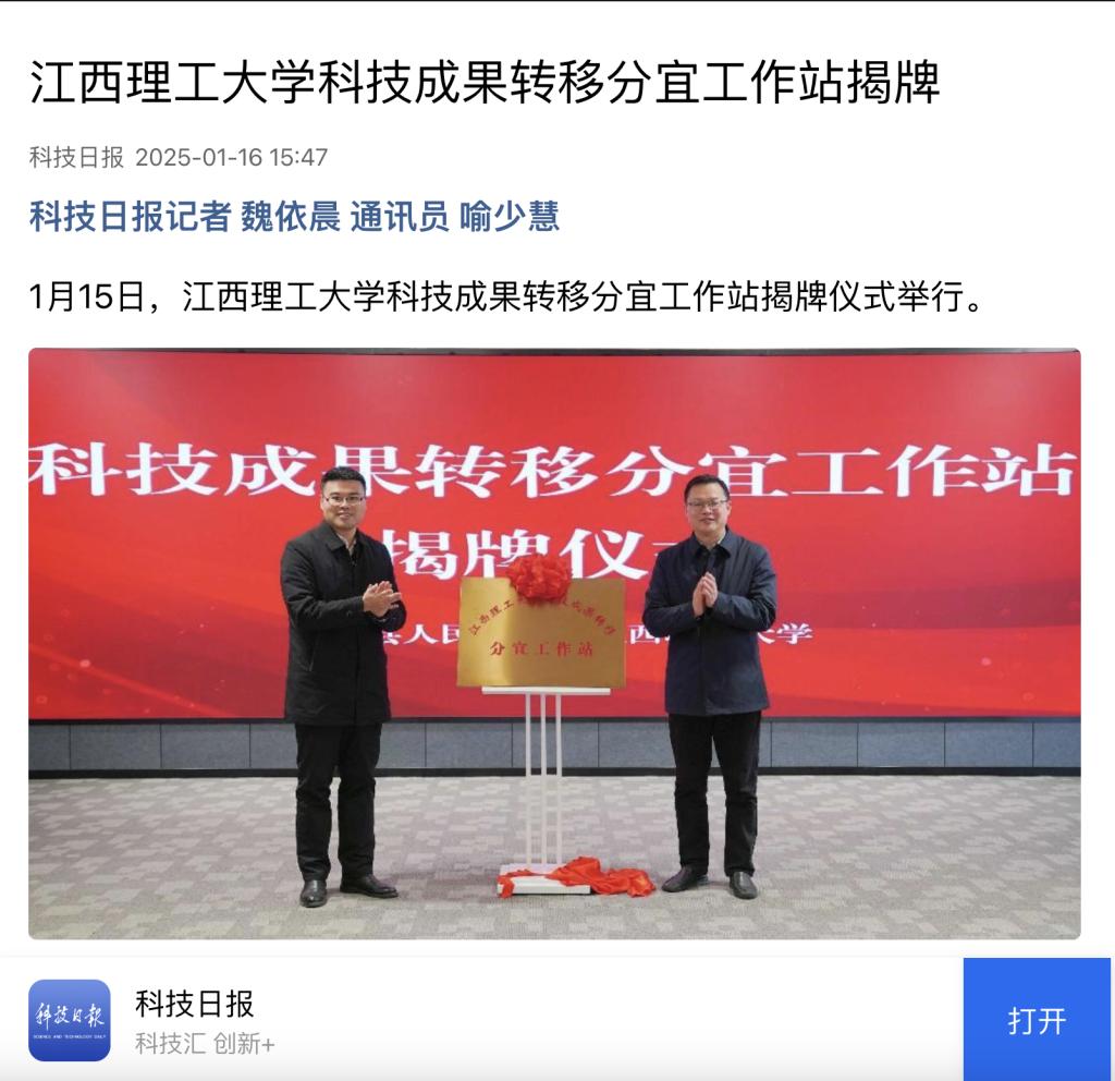 1月15日,颜射 科技成果转移分宜工作站揭牌仪式举行。
