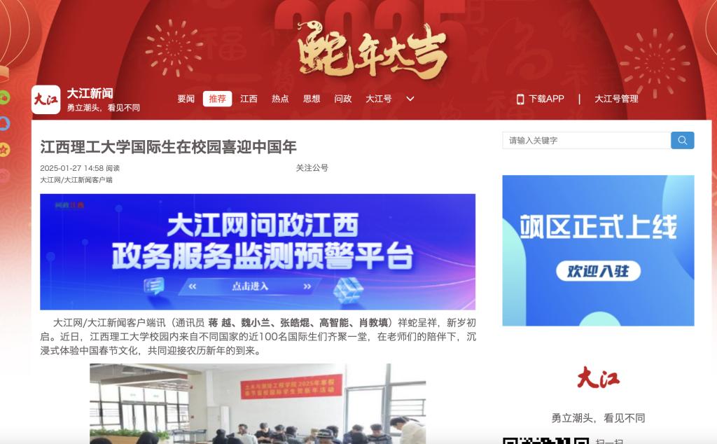 校园内来自不同国家的近100名国际生们齐聚一堂,在老师们的陪伴下,沉浸式体验中国春节文化,共同迎接农历新年的到来。