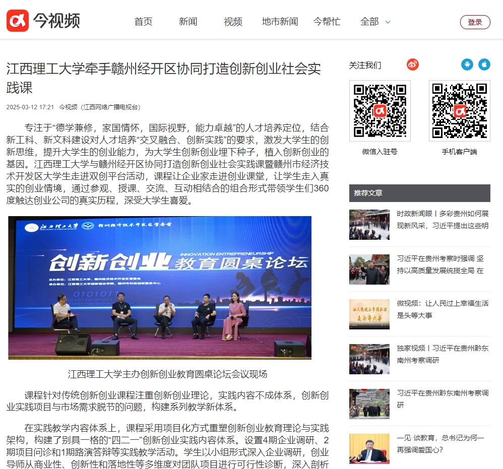 与赣州经开区协同打造的创新创业社会实践课,为学生提供创新创业广阔平台,为地方经济发展增添新动力,为培养新时代创新创业人才积累宝贵经验,在全国范围内具有重要的推广借鉴价值。(图文 刘磊)