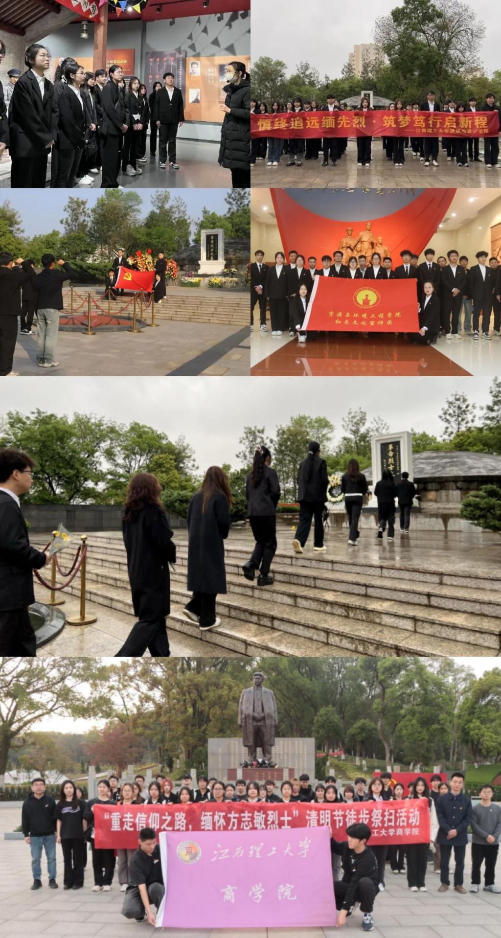 ▲软件工程学院、商学院、信息工程学院、资源与环境工程学院、建筑与设计学院等组织师生代表前往方志敏烈士纪念馆、南康区革命烈士纪念园、赣州市烈士陵园等开展清明祭英烈教育活动。