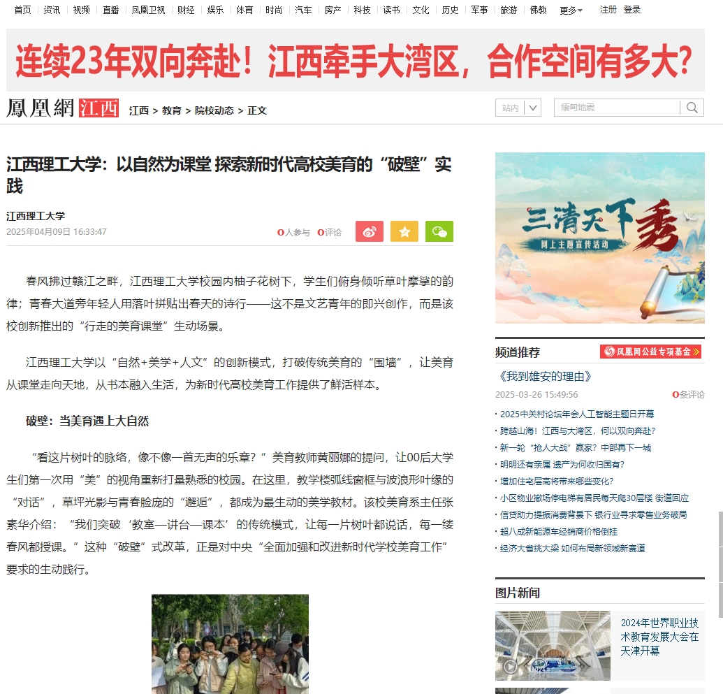 放眼望去,这片红土地上的美育实践,恰似赣江春潮,奔涌向前。在这里,美育不再是锦上添花的点缀,而是立德树人的重要支点;美育课堂不再囿于方寸讲台,而是延伸到了天地之间。这场关于“美”的深刻变革,正在为培养德智体美劳全面发展的时代新人注入澎湃动能。(文、图/黄丽娜 张素华)