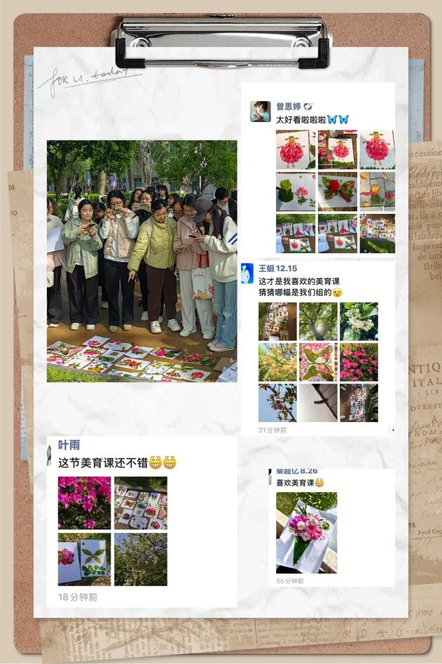 在大学美育课程自然美内容板块,会计专业学生用树叶排列出严谨的“春之账本”,机械工程学子则用花瓣拼出精密的“自然齿轮”。这种跨专业的创意碰撞,正是该校“美育+”浸润工程的缩影。“美不该是高高在上的阳春白雪。”美育教学团队负责人黄丽娜说,“当学生发现枯枝落叶也能成为艺术语言时,美育才真正完成了从知识到素养的转化。”如今,该校2000亩生态校园已成为开放式美育实验室,四季轮转的自然万象都是现成的教学素材。