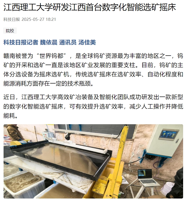 高效矿冶装备及智能化团队成功研发出一款新型的数字化智能选矿摇床,可有效提升选矿效率,减少人工操作并降低能耗。