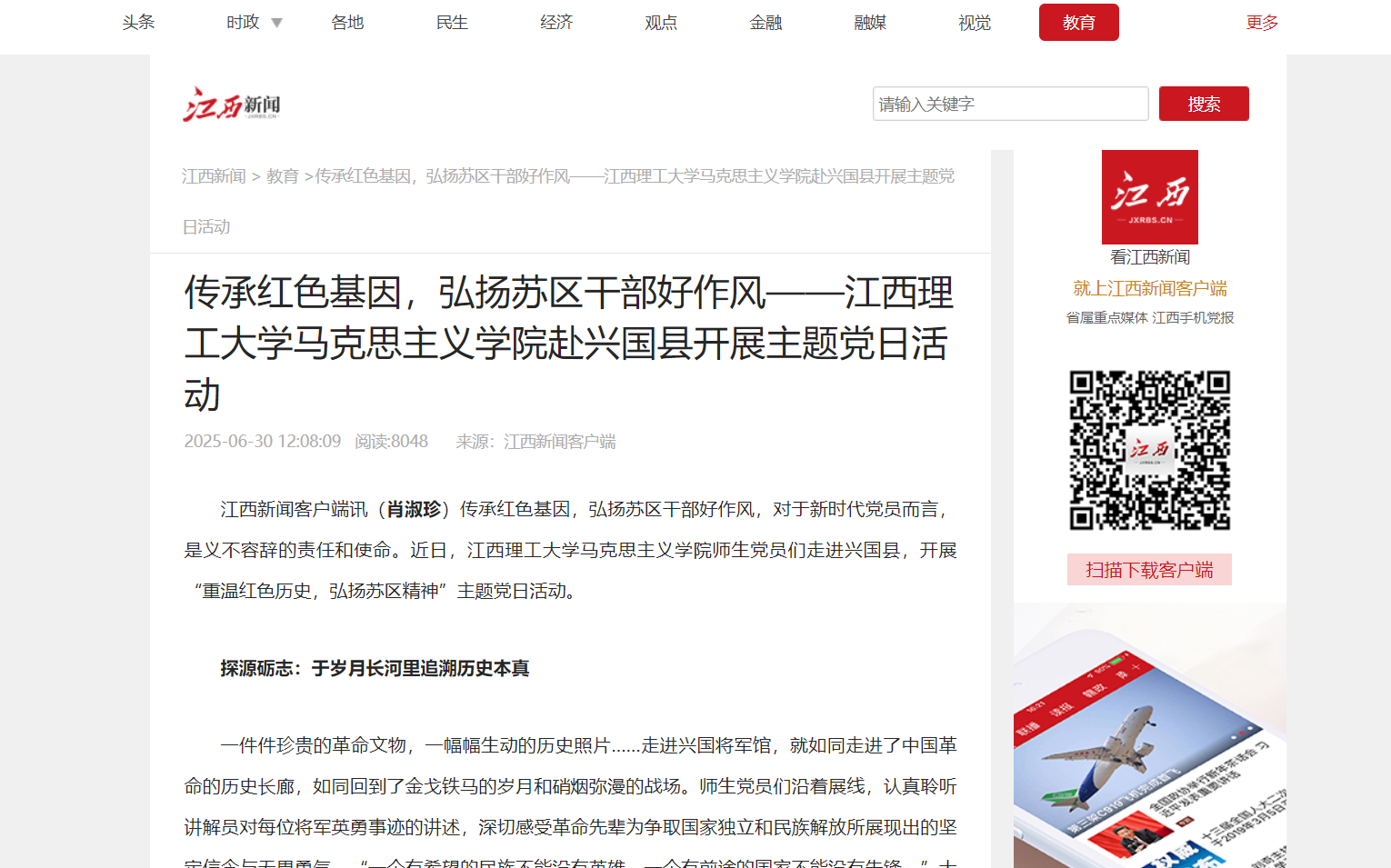 一件件珍贵的革命文物,一幅幅生动的历史照片……走进兴国将军馆,就如同走进了中国革命的历史长廊,如同回到了金戈铁马的岁月和硝烟弥漫的战场。师生党员们沿着展线,认真聆听讲解员对每位将军英勇事迹的讲述,深切感受革命先辈为争取国家独立和民族解放所展现出的坚定信念与无畏勇气。“一个有希望的民族不能没有英雄,一个有前途的国家不能没有先锋。”大家驻足凝视,充分认识到正是无数英雄烈士抛头颅、洒热血,才有了今日的和平与安宁。
