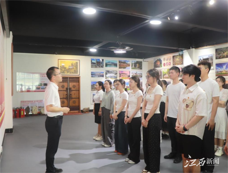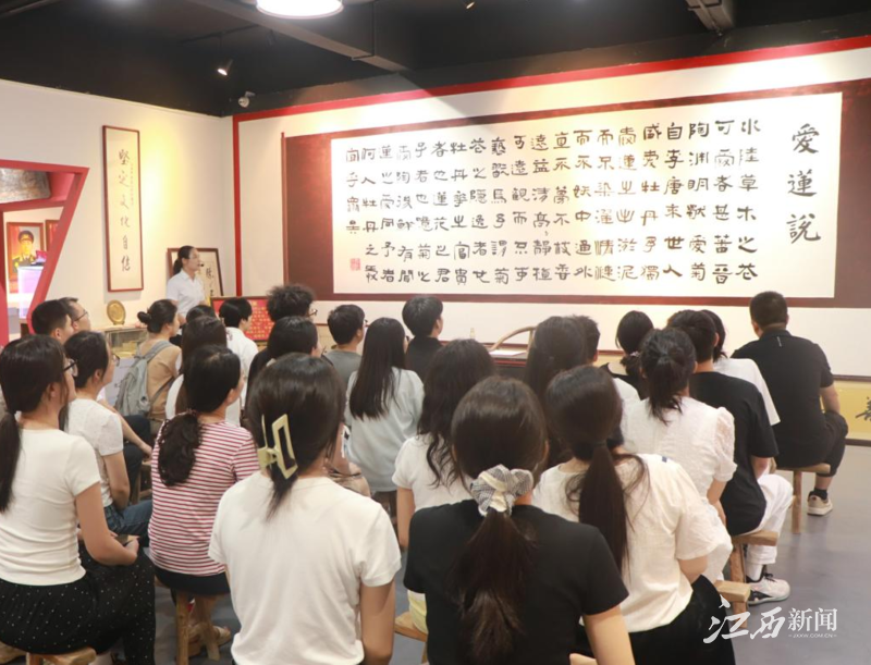 “苏区干部好作风,自带干粮去办公”的悠扬旋律回荡展厅,讲解员用清亮的嗓音唱起兴国山歌,将红色廉政故事融入传统曲调。一曲曲山歌,既是对兴国籍革命先辈清廉自律精神的深情讴歌,也让大家在非遗魅力中感悟红色革命精神,让清正廉洁的种子在研究生党员心中生根发芽。