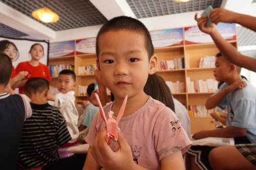 孩子们的小手跟着大手的引导,当一张张彩纸最终在孩子们手中“华丽转身”为一只只昂首挺胸的千纸鹤时,教室里爆发出一阵欢呼。孩子们小心翼翼地将千纸鹤捧在手心,稚嫩的脸庞上洋溢着满满的成就感,仿佛真的握住了一只即将载梦飞翔的小鸟。“现在,让我们把心里最想实现的梦想,用笔写上去,悄悄地告诉千纸鹤吧!”黎玉帆细心地帮一个孩子整理好纸鹤翘起的翅膀,笑着说道。“小小的千纸鹤,可是要承载我们大大的梦想。大家一定要用心守护好它呀。”