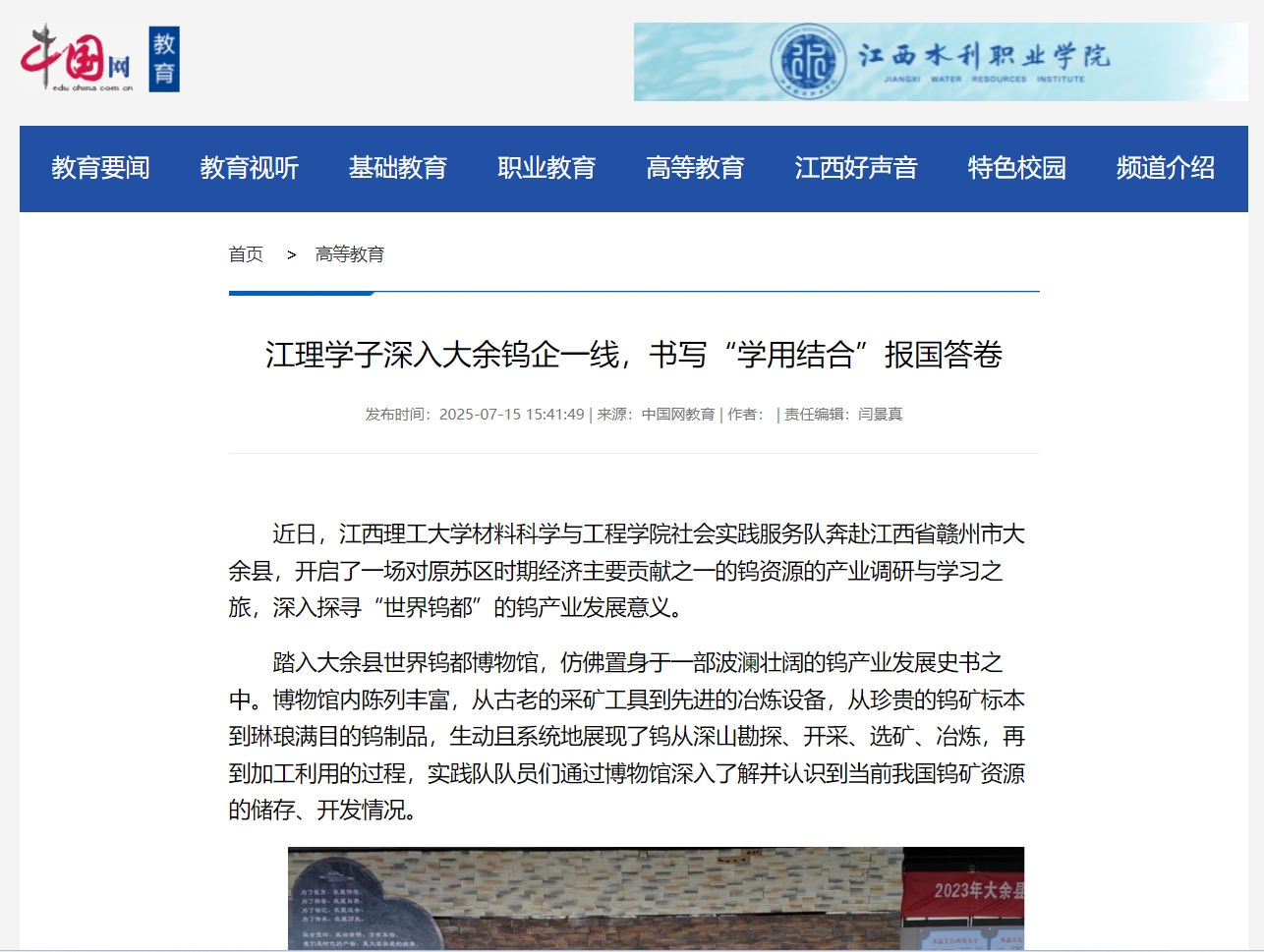 材料科学与工程学院社会实践服务队奔赴江西省赣州市大余县,开启了一场对原苏区时期经济主要贡献之一的钨资源的产业调研与学习之旅,深入探寻“世界钨都”的钨产业发展意义。