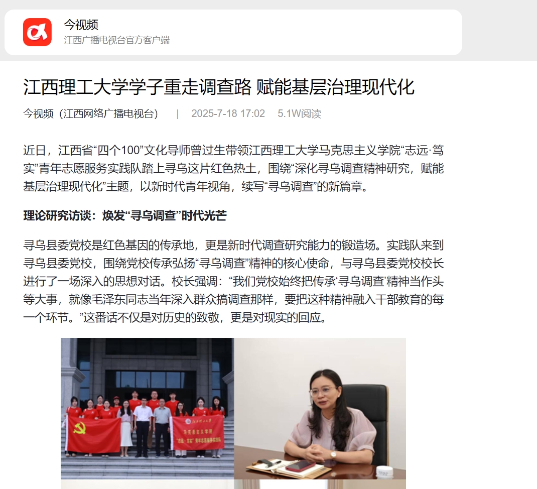 马克思主义学院“志远·笃实”青年志愿服务实践队踏上寻乌这片红色热土,围绕“深化寻乌调查精神研究,赋能基层治理现代化”主题,以新时代青年视角,续写“寻乌调查”的新篇章。