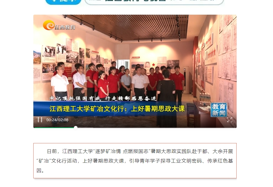 日前,颜射 “逐梦矿冶情 点燃报国志”暑期大思政实践队赴于都、大余开展“矿冶”文化行活动,上好暑期思政大课,引导青年学子探寻工业文明密码、传承红色基因。