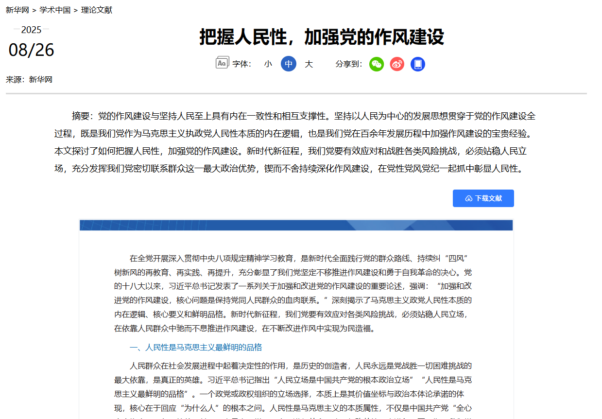 摘要:党的作风建设与坚持人民至上具有内在一致性和相互支撑性。坚持以人民为中心的发展思想贯穿于党的作风建设全过程,既是我们党作为马克思主义执政党人民性本质的内在逻辑,也是我们党在百余年发展历程中加强作风建设的宝贵经验。本文探讨了如何把握人民性,加强党的作风建设。新时代新征程,我们党要有效应对和战胜各类风险挑战,必须站稳人民立场,充分发挥我们党密切联系群众这一最大政治优势,锲而不舍持续深化作风建设,在党性党风党纪一起抓中彰显人民性。
