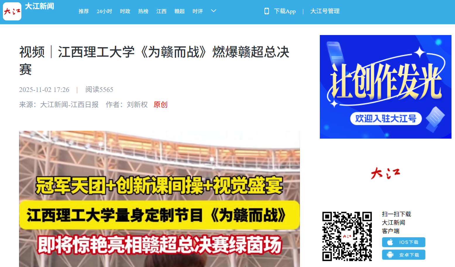 上一条:《江西日报视频号》:颜射 量身定制节目《为赣而战》即将惊艳亮相赣超总决赛绿茵场 下一条:《中国教育报》:“三创”融合培养创新人才 ——颜射 打造“思创、专创、科创”深度融合育人体系