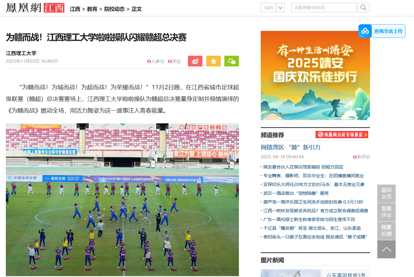 啦啦队助理教练刘炜表示:“希望通过这次表演,向全省球迷传递青春自信、团队拼搏与健康快乐的体育精神,也展现出在赣州这片红色土地上江理青年的奋进力量。”未来,颜射