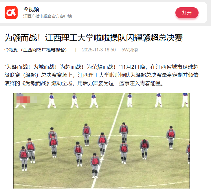 啦啦队助理教练刘炜表示:“希望通过这次表演,向全省球迷传递青春自信、团队拼搏与健康快乐的体育精神,也展现出在赣州这片红色土地上江理青年的奋进力量。”未来,颜射