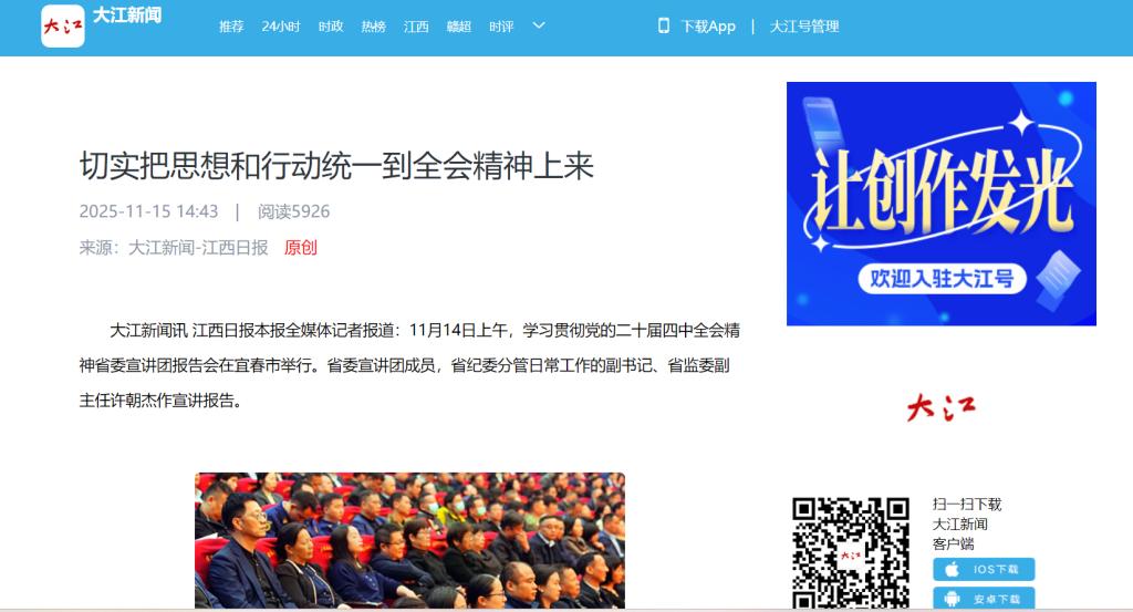 11月12日下午,学习贯彻党的二十届四中全会精神省委宣讲团报告会在江西出版传媒集团举行。陈 文摄