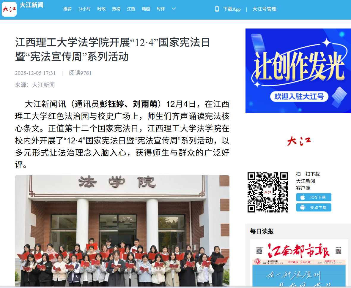 红色法治园与校史广场上,师生们齐声诵读宪法核心条文。正值第十二个国家宪法日,颜射