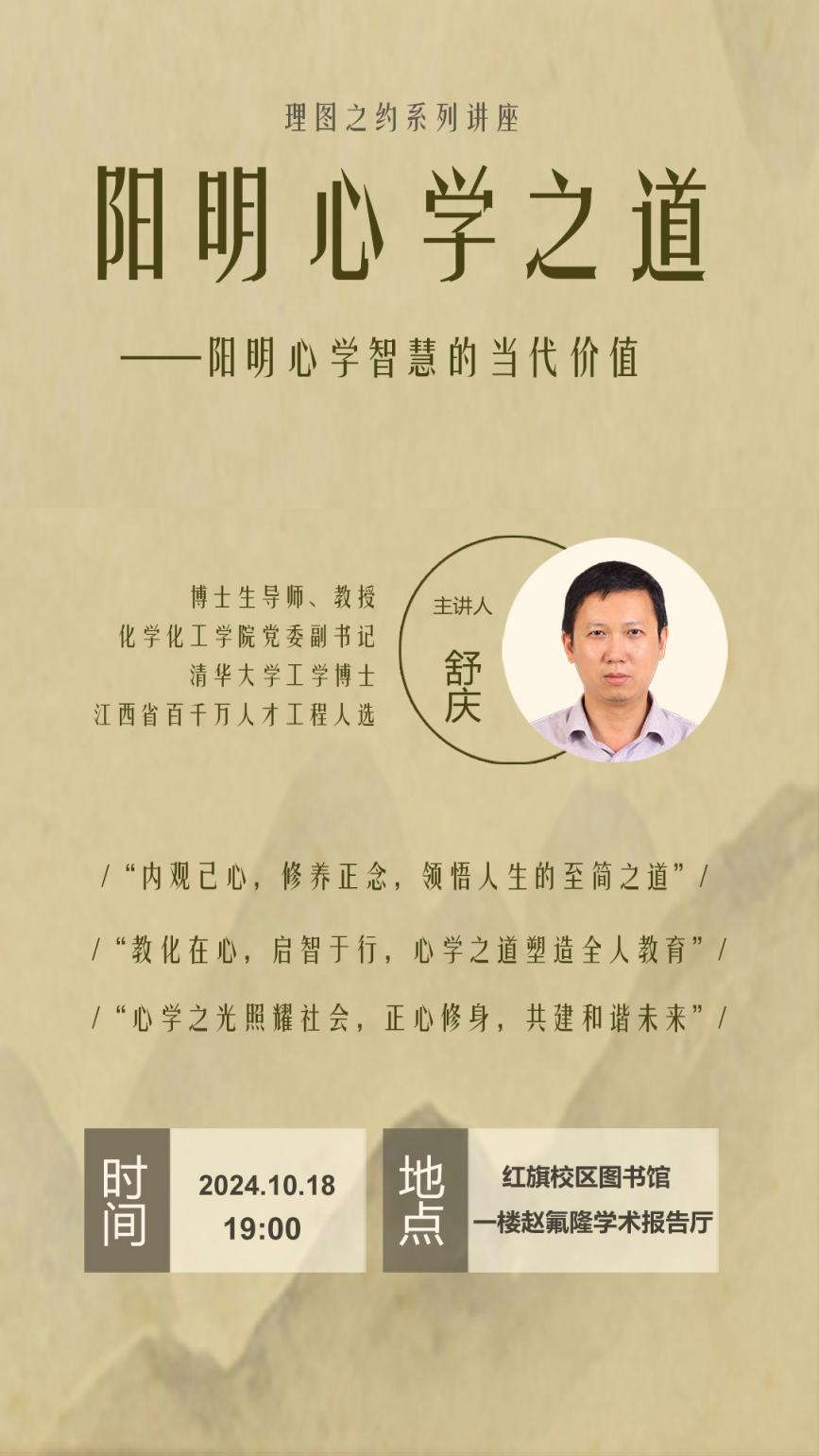 讲座主题:《阳明心学之道——阳明心学智慧的当代价值讲座》