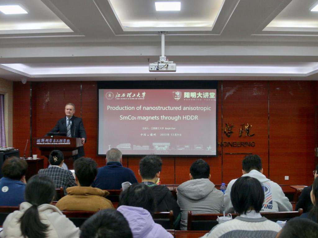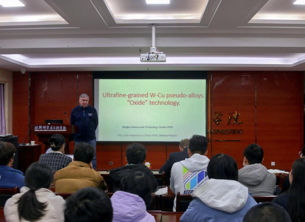 金属材料领域专家Nikolay Filippov研究员做客阳明大讲堂,在黄金校区稀土大楼C520开展学术讲座。稀土学院百余名师生参加,讲座由稀土学院党委副书记李振主持。