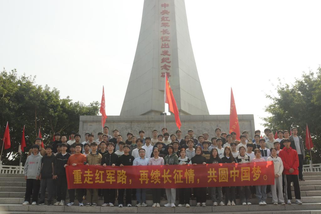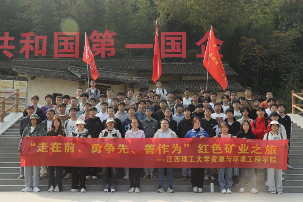 本网讯 近日,为弘扬伟大的长征精神,汲取奋进新征程的磅礡力量,资源与环境工程学院组织地矿专业学生前往于都县“长征第一渡”、红军长征小道、共和国第一国企旧址等地,开展“走在前、勇争先、善作为”红色矿业之旅。资源与环境工程学院党委委员赖华、张吉勇带领同学们重走长征路、感悟矿业情。