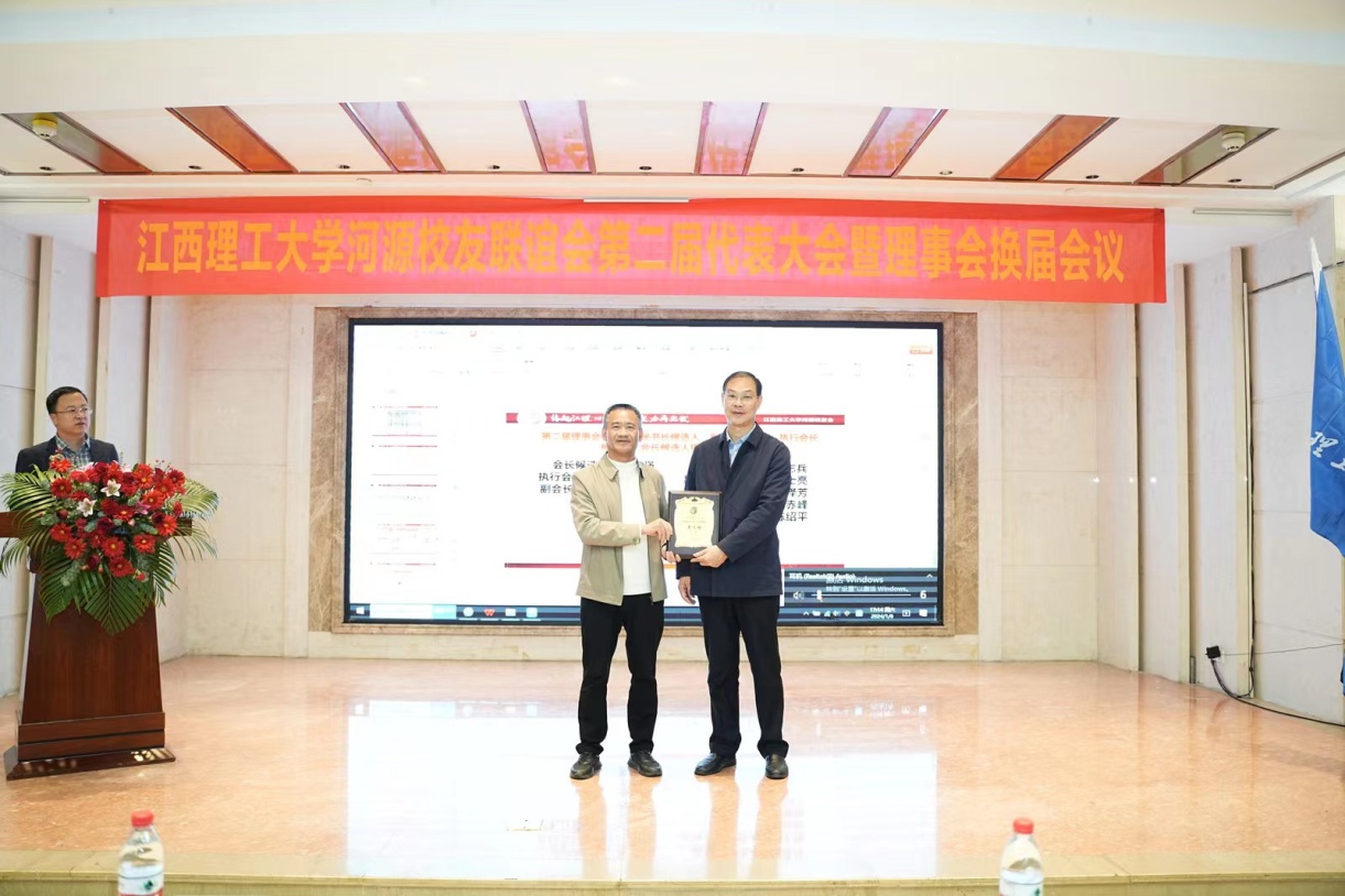 廖春发向会长颁发聘书、授旗,向新一届理事会的产生表示热烈的祝贺。他表示,新一届河源校友联谊会理事会的产生,标志着河源校友工作开启了新起点、新面貌、新使命,希望河源校友工作一要加温度,发挥桥梁纽带作用,持续加强沟通联系,用心用情服务好河源校友,共同建设好、维护好、发展好河源校友之家;二要深广度,充分搭建好、充实好平台功能,汇聚校友力量,牵线资源互补,为母校和校友发展提供更加坚实的助力;三要提高度,将校友工作与推动河源经济社会发展紧密结合起来,为国家建设、地方经济社会发展贡献出江理智慧与力量。最后,廖春发向广大校友发出了“请校友回母校”的邀请。